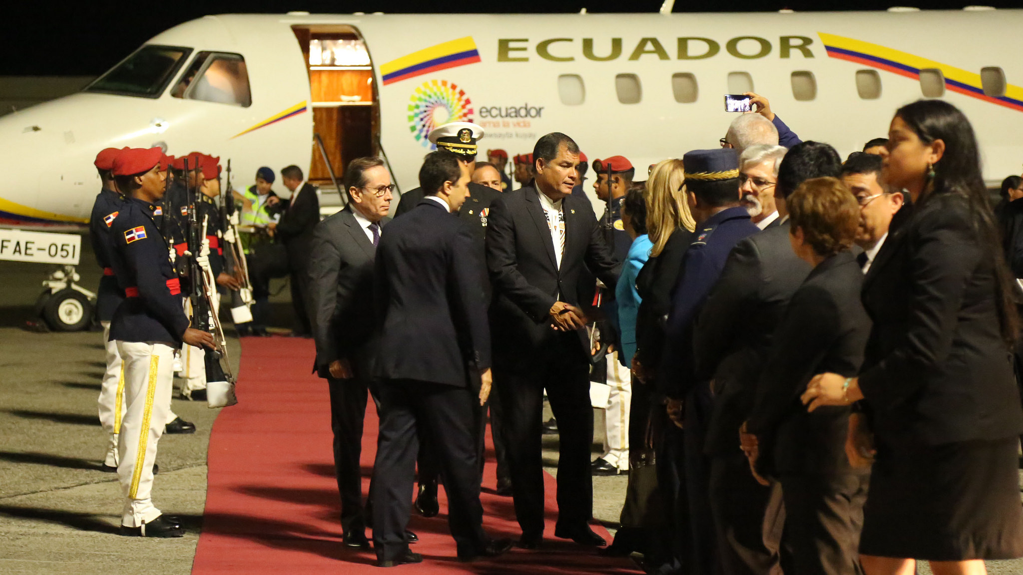 SANTO DOMINGO, República Dominicana.- El presidente de Ecuador, Rafael Correa, llegó hoy al país, para acompañar a su homólogo dominicano, Danilo Medina, quien este martes será juramentado para un nuevo periodo presidencial.
