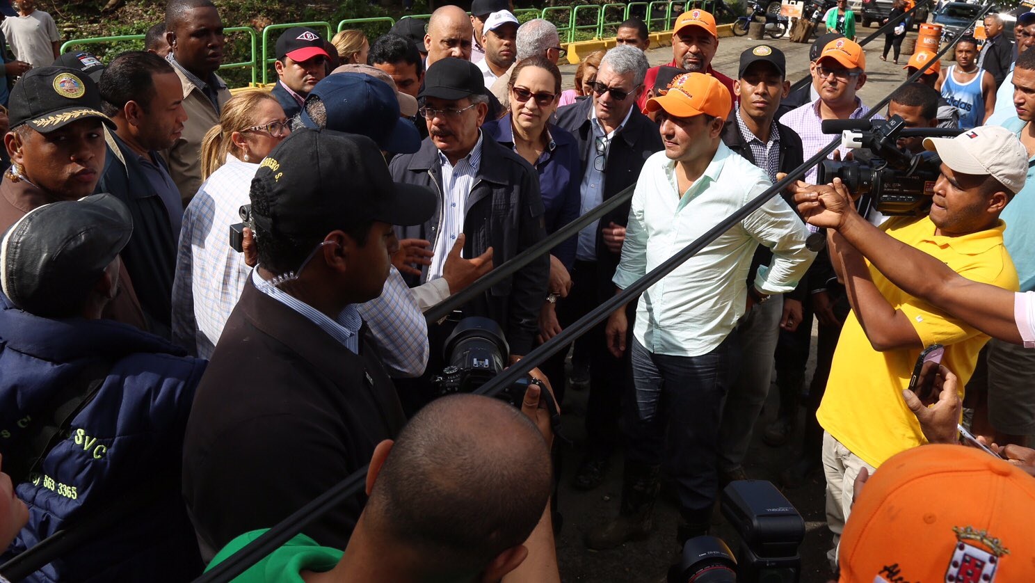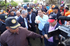 El jefe del Estado llegó en helicóptero hasta la base del Comando Cibao Central de la Policía Nacional e inmediatamente se unió al alcalde Martínez y su representante en la provincia, para iniciar un recorrido que los llevó a algunas de las zonas afectadas.