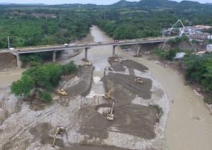 Indicó que para devolver al puente su operatividad total, se canaliza la parte central del cauce del río en una longitud de 300 metros por 50 de ancho, y profundidad de 1.5 metros para construir un paso guía que desvíe el río, ya que se está dividiendo en dos ese afluente.