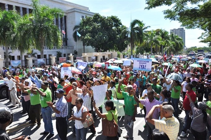 Desde hace varias semanas los docentes de escuelas públicas del Distrito Nacional y del interior se movilizan en reclamo de un aumento de sueldos del 25 por ciento, inclusive han escenificado manifestaciones frente al Ministerio de Educación.