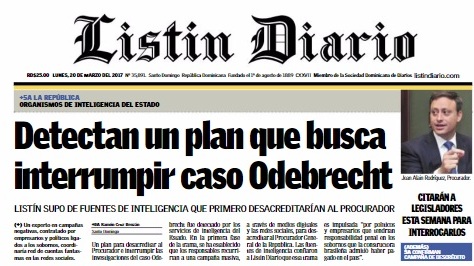 La confirmación la hizo el propio jefe del Ministerio Público, en referencia a la publicación de una información del matutino Listín Diario, titulada “Detectan plan que busca interrumpir investigación en el caso Odebrecht”, en su portada de este lunes, mientras en la noticia del interior del rotativo se indica que “Confirman campaña para desacreditar al Procurador”.