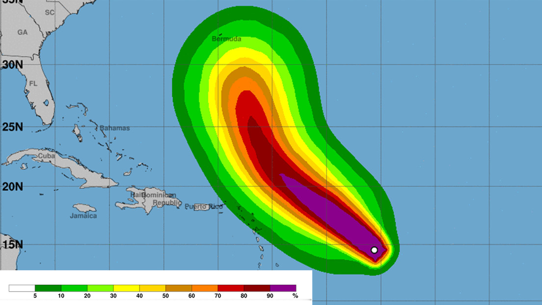 El Centro Nacional de Huracanes de Estados Unidos informó este lunes que el fenómeno se fortalece rumbo hacia el Caribe.