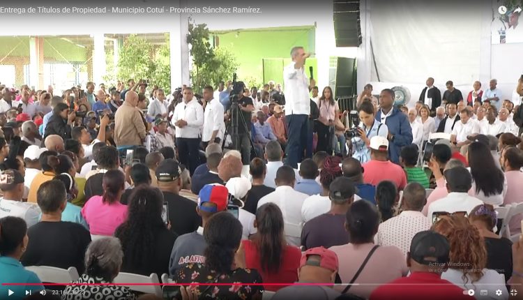 COTUÍ, provincia Sánchez Ramírez, República Dominicana.-. El presidente Luis Abinader ratificó su compromiso de trabajar por el bienestar de la población, principalmente con el derecho que tiene cada dominicano a tener un título de propiedad.