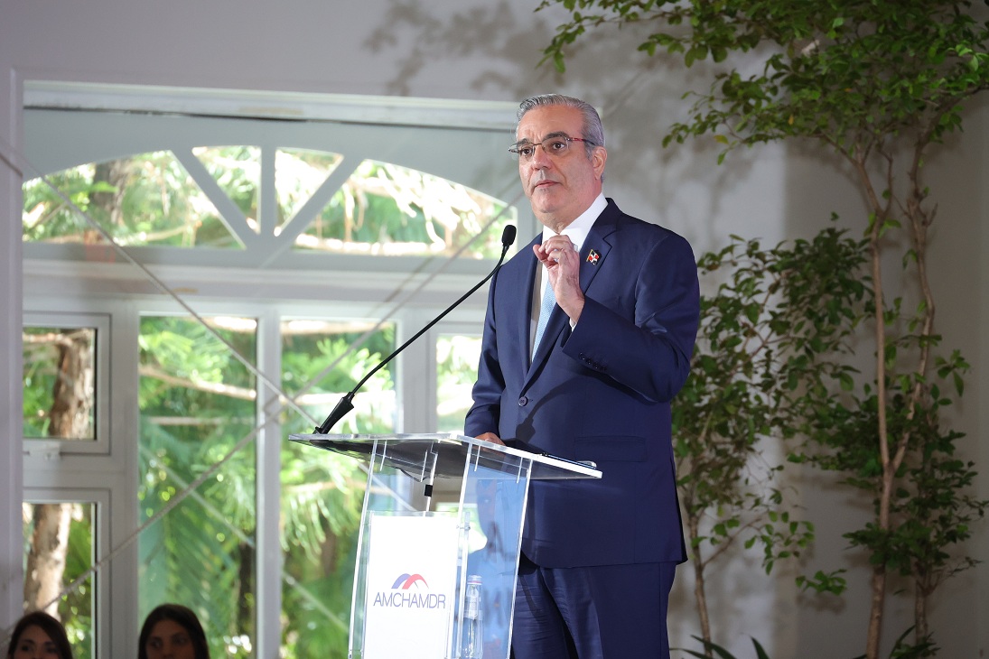 REPÚBLICA DOMINICANA.-. El presidente Luis Abinader participó como orador invitado y huésped de honor al tradicional almuerzo de la Cámara Americana de Comercio de la República Dominicana (AMCHAMDR), correspondiente a marzo, en donde afirmó que la República Dominicana de hoy está más fuerte, más próspera y preparada para el futuro que nunca.