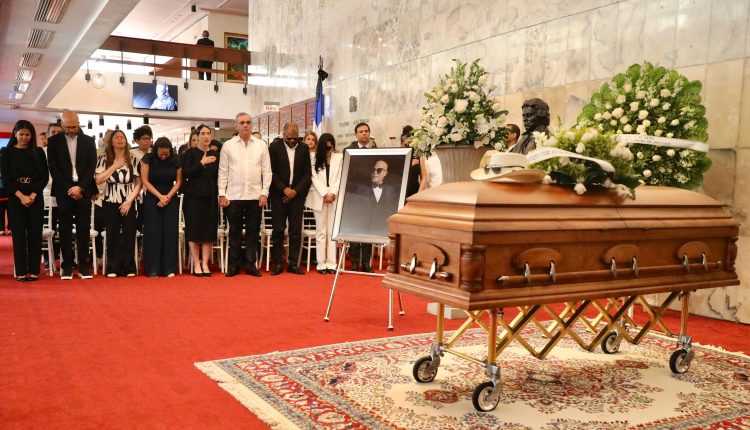 El presidente Abinader rindió guardia de honor ante el ataúd de este ícono de la cultura dominicana junto a la primera dama, Raquel Arbaje y los ministros de Cultura, Roberto Ángel Salcedo y de la Presidencia, José Ignacio Paliza.